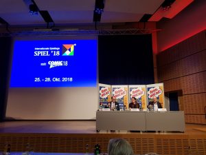 Am heutigen Sonntag, den 28. Oktober 2018, enden die 36. Internationalen Spieletage Spiel `18. Wer die Besuchermassen am ersten Messetag live erlebt hat, wird wohl kaum daran zweifeln, dass auch die diesjährige Ausgabe der Messe wiederum ein voller Erfolg für die Aussteller und den veranstaltenden Friedhelm Merz Verlag ist. Bereits einen Tag vor der Eröffnung der Spiel `18 hatten die Vertreter der Fachpresse nicht nur die Möglichkeit, in der Neuheitenhalle 1A vorab einen Blick auf die Spieleneuheiten zu werfen. Im Saal Europa des CC West fand die traditionelle Eröffnungs-Pressekonferenz statt, auf der, nach kurzen einführenden Worten des Geschäftsführers der Messe Essen, Oliver P. Kuhrt, Dominique Metzler und Frank Zirpins als Vertreter des Merz Verlages, einen Überblick über die Spiel `18 gaben.