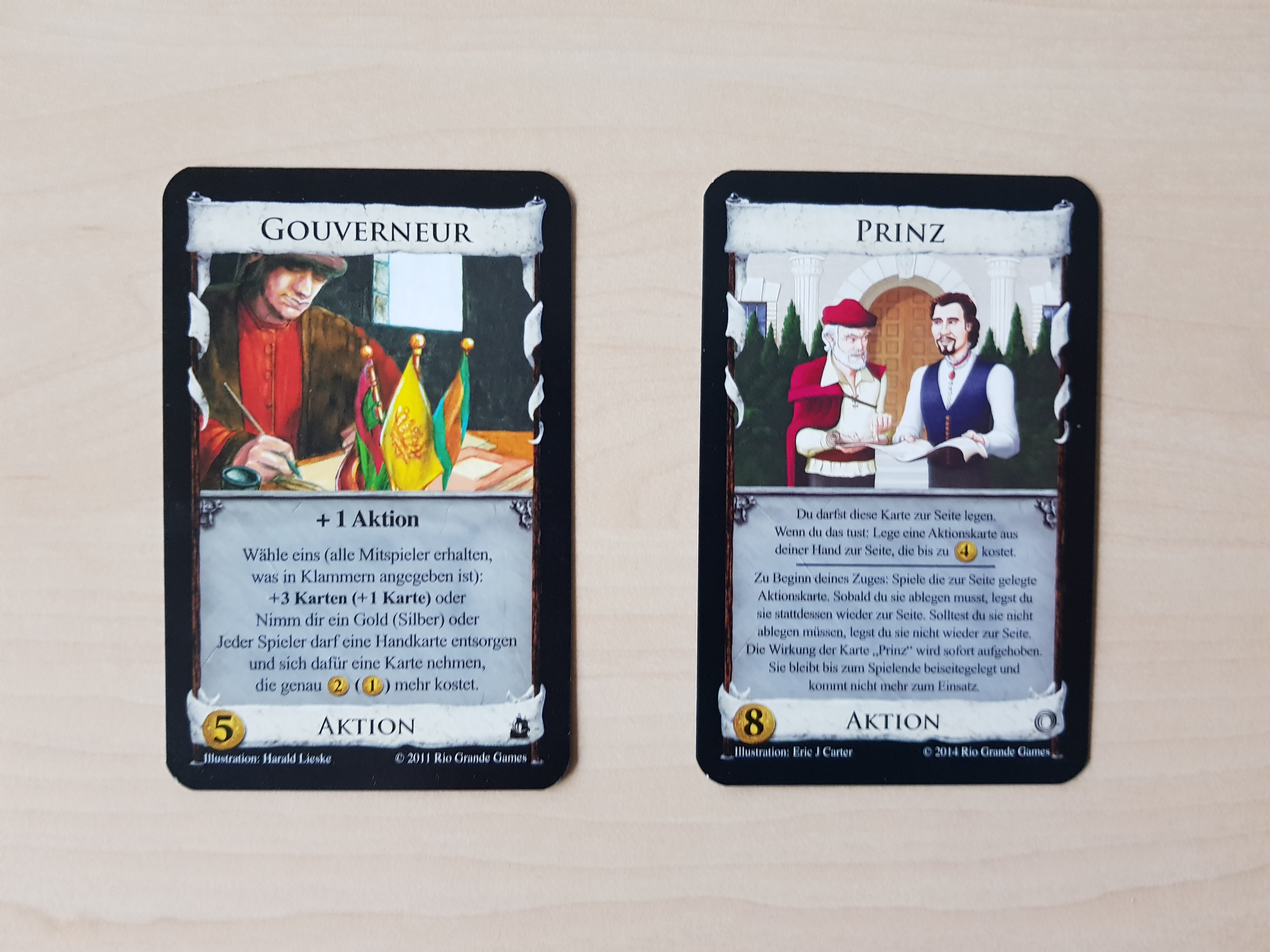 Für die meisten Käufer sicherlich das wichtigste Argument für die Anschaffung dürften aber ohne Zweifel die beiden Promokarten Gouverneur und Prinz sein, die diese Erweiterung ebenfalls mitliefert.