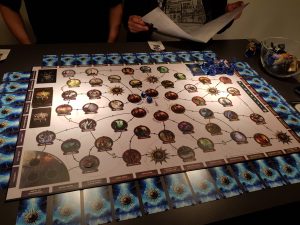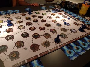 Games Workshop ist ja in erster Linie für seine Tabletop Spiele Warhammer und Warhammer 40.000 bekannt. Dieses Jahr hat der englische Spieleverlag sein Angebot auch noch um mehrere klassische Brettspiele erweitert, von denen wir hier Storm Vault als erstes getestet haben. Dieses kooperative Fantasy-Abenteuer-Brettspiel bewegt sich thematisch in der Welt von Warhammer – Age of Sigmar, wie schon an der Covergestaltung der Box unschwer zu erkennen ist. In dieser verbirgt sich das gesamte Spielmaterial in Form von 6 Miniaturen, 2 Würfeln, 86 Karten, 55 Markern und einem Stoffbeutel.