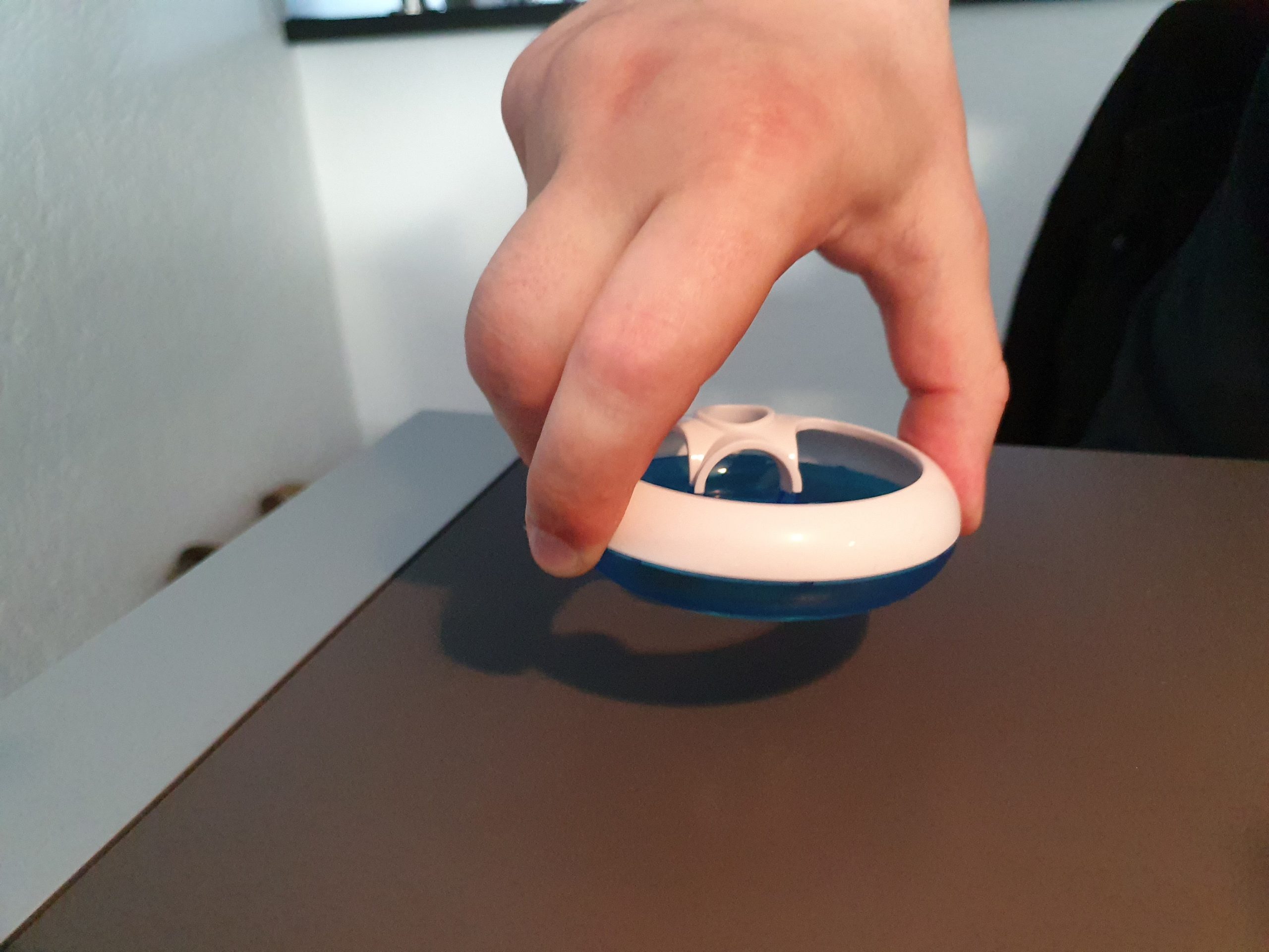 Ob man mit Loopy Looper wirklich seinen Geist befreien kann, um zu voller Kreativität zu gelangen, sei an dieser Stelle dahingestellt, denn schon allein die Murmel im Kreisel zu halten, erfordert verdammt viel Konzentration und vor allem die richtigen Handbewegungen. Nichtsdestotrotz ist dieses kleine Geschicklichkeitsspiel wirklich kurzweilig und definitiv eine gute und schnelle Abwechslung, um zwischendurch einmal wieder auf andere Gedanken zu kommen. Praktischerweise wird gleich noch eine zweite Murmel mitgeliefert, denn bei den ersten Versuchen mit Loopy Looper wird diese des Öfteren quer durch den Raum fliegen und bisweilen unter Schränken und Sofas verschwinden, so dass griffbereiter Ersatz nie schaden kann.