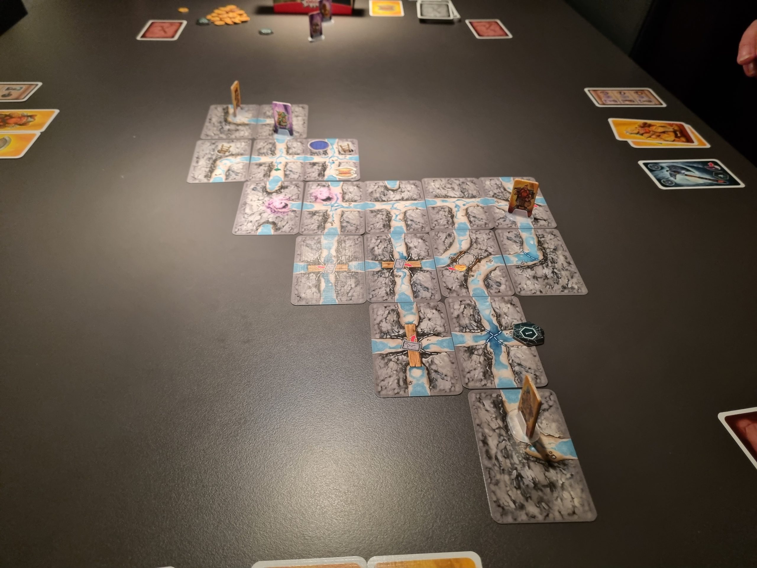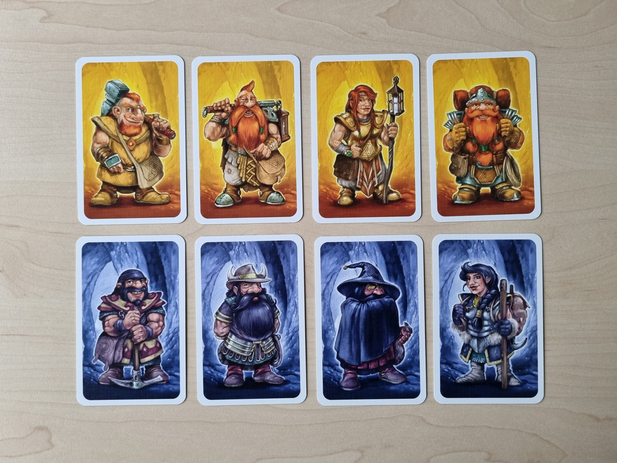 Zur Spielvorbereitung wird die Startkarte in der Mitte und die 4 Zielkarten gemäß Anleitung verdeckt in den Ecken des Spielfeldes platziert. Dann werden ebenfalls gemäß Anleitung abhängig von der Spielerzahl die Clankarten vorbereitet und verdeckt an die Spieler verteilt, die sich dann noch einen Zwerg ihres Clans und seine zugehörige Karte nehmen. Die Zwergenfiguren werden auf die Startkarte gestellt, auf jede Zwergenkarte kommen 3 Gold aus dem allgemeinen Vorrat. Zuletzt werden noch die Wege- und Aktionskarten nach Leveln getrennt gemischt und die Spieler erhalten 5 davon als Handkarten. Die übrigen bilden den verdeckten Nachziehstapel. Nun kann die Flucht aus der Höhle starten. Der jeweils aktive Spieler spielt in seinem Zug entweder eine seiner Handkarten aus, indem er eine Wegekarte an das Wegenetz anlegt oder eine Aktionskarte wählt und deren Effekte abhandelt, oder er wirft bis zu 2 seiner Handkarten ab. Danach kann er seinen Zwerg bis zu 3 Felder weit bewegen. Erreicht er dabei eine Zielkarte, deckt er diese auf und legt sie passend ans Wegenetz an. Ist der Ausgang auf der Karte, nimmt der Spieler seinen Zwerg vom Spielfeld und deckt seine Clankarte auf. Zuletzt zieht er wieder auf 5 Handkarten auf. Das Spiel endet, wenn der Nachziehtstapel aufgebraucht ist und alle Spieler ihre Handkarten ausgespielt haben oder sobald alle Zwerge eines Clans die Höhle durch den Ausgang verlassen haben.