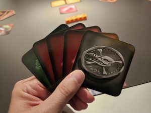 Die Beute der letzten Piratenfahrt will aufgeteilt werden. Dazu hat sich die gesamte Crew zur Würfelrunde versammelt. Wer wird hier am Ende seine Karten am besten ausspielen und wem wird das Würfelglück hold sein, so dass er die meisten Schätze zusammenraffen kann?