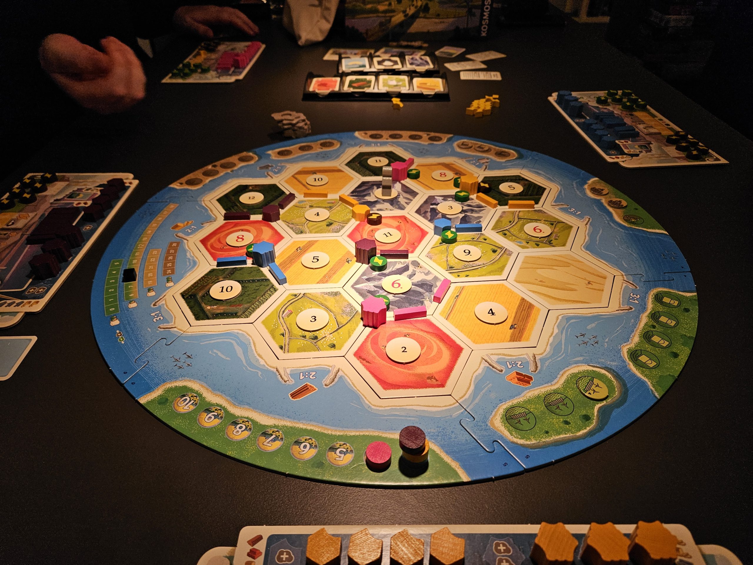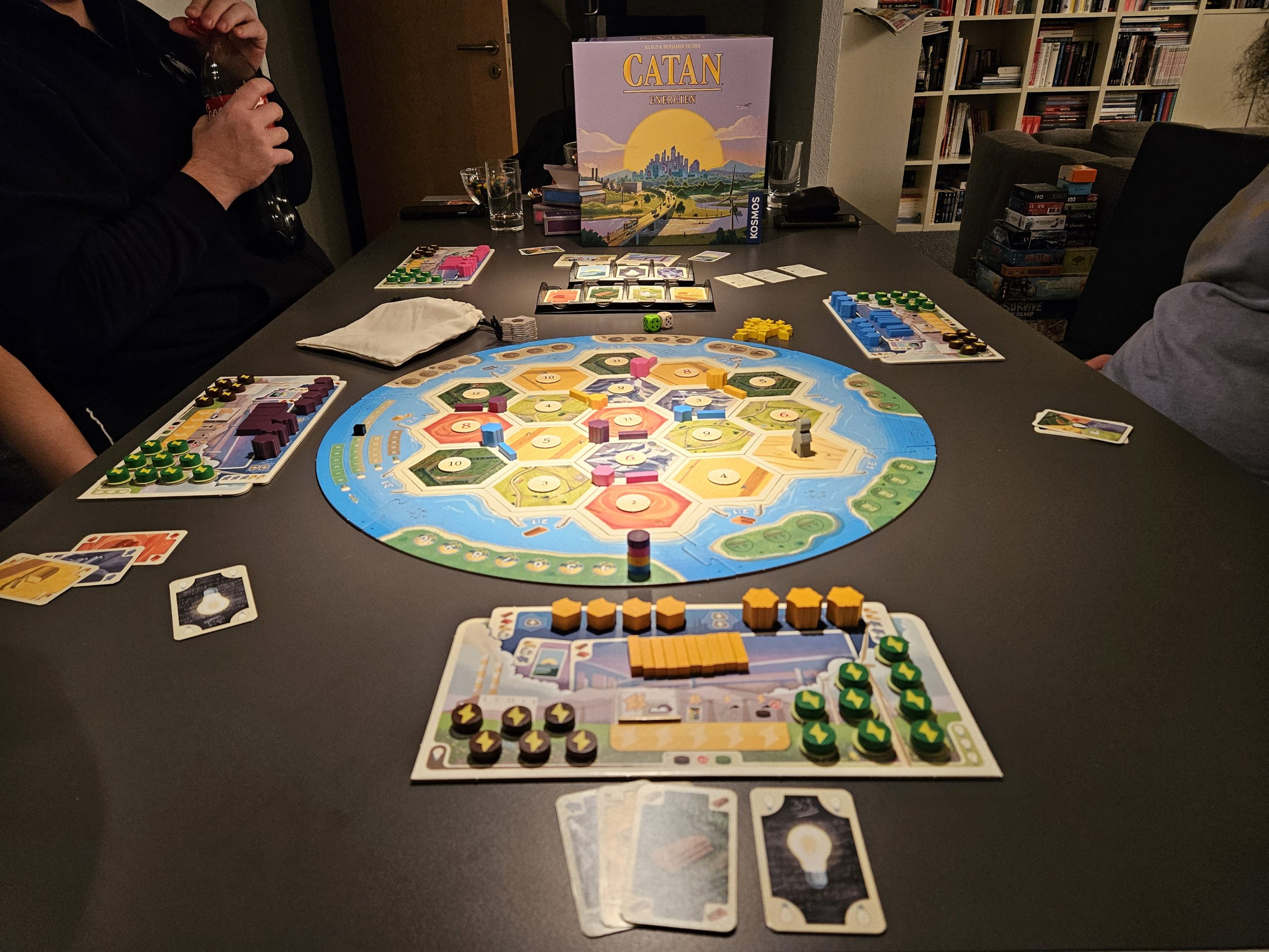 Wir haben ja lange auf das neue Catan Energien gewartet und die Wartezeit hat sich definitiv gelohnt. Das grundlegende Spielprinzip von Catan ist auch bei dieser neuen Variante unverändert geblieben, so dass man sofort wieder im Spiel drin ist. Durch die Ereignis-Chips, den Verschmutzungsmarker und die Umweltschäden, die man sich aufgrund von ausgelösten Ereignissen einhandeln kann, haben der leider am 1. April 2023 verstorbene Klaus Teuber und sein Sohn Benjamin aber geschickt neue Elemente ins Spiel gebracht, durch die es sich erkennbar vom Ur-Catan unterscheidet. Somit ist dieser Titel sowohl für alte Catan-Veteranen als auch komplette Neueinsteiger wirklich eine Empfehlung. Was auch mehr als positiv ist, ist die Tatsache, dass man bei diesem Spiel bis auf die Trays für die Karten wieder komplett auf Plastik verzichtet und die gesamten Spielfiguren aus Holz gefertigt hat, was aufgrund der Umweltthematik des Titels auch mehr als Sinn macht. Auch das Aufbewahrungssystem mit den kleinen Pappboxen ist mehr als clever, auch wenn hier noch eine fünfte für das allgemeine Spielmaterial mehr als wünschenswert gewesen wäre.