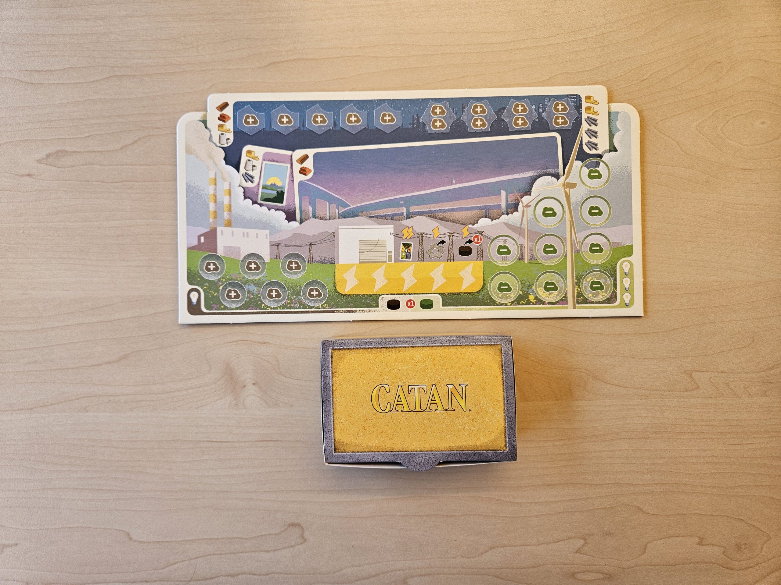 Die kleine Insel Catan hat sich seit ihrer Entdeckung stark verändert. Aus einfachen Siedlungen sind mittlerweile Forschungsstädte geworden, welche aber auch einen gewaltigen Energiebedarf haben, wodurch die Umweltverschmutzung zunimmt. Wie wird sich die Zukunft Catans wohl entwickeln?