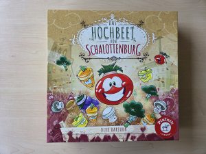 Der Wiener Piatnik Verlag hatte ja zur Spielwarenmesse Anfang 2025 einen ganzen Schwung an Spieleneuheiten nach Nürnberg mitgebracht. Eine davon war Das Hochbeet von Schalottenburg des Autors Dirk Barsuhn, welches wir heute einmal genauer unter die Lupe nehmen wollen. Eine quadratische Standardbox bildet dabei die Verpackung für den Titel und ihre Covergestaltung lässt wenig Zweifel daran aufkommen, dass es hier um Gemüse gehen wird. Nehmen wir den Deckel ab, so sorgt im Innern der Box ein Pappeinleger für Ordnung beim Spielmaterial, welches wiederum aus dem Spielplan, 15 Markern, 44 Plättchen, fünf abwischbaren Wertungstafeln, fünf Stiften und dem Regelheft besteht.