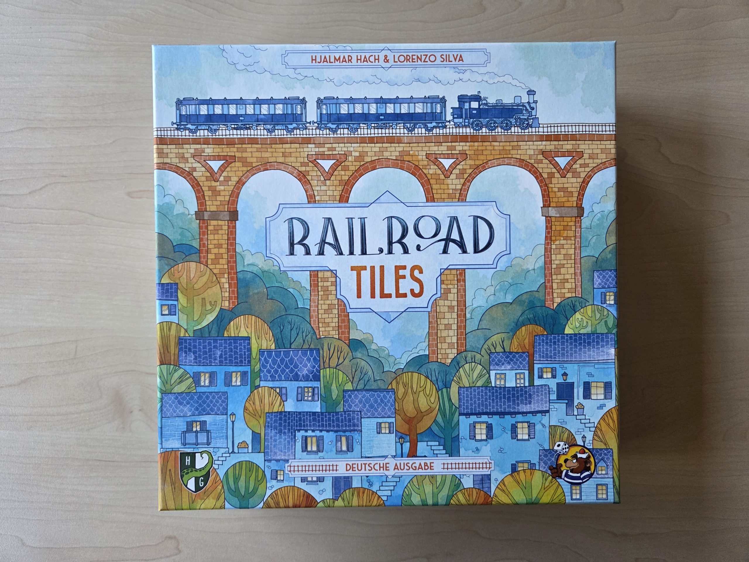 2021 hatten wir hier im Blog das Roll`n Write Railroad Ink des Autorenduos Hjalmar Hach und Lorenzo Silva vorgestellt, welches in der deutschen Version von Heidelbär Games vertrieben wird. Zur Spielwarenmesse 2025 hatten die beiden in Form von Railroad Tiles eine komplett neue Version ihres Erfolgstitels vorgestellt, bei dem man nun Plättchen vor sich zu einem Schienen- und Straßennetz auslegen muss. Es hat dann bis Ende 2025 gedauert, bis das Spiel endlich in den Handel gelangte und auch wir uns ein Exemplar besorgen konnten, welches Thema unseres heutigen Mittwochsspecials sein soll. Als Verpackung dient dem Titel dabei eine quadratische Box im typischen Stil der gesamten Spielereihe. Öffnen wir diese, so finden wir darin die zweiteilige Bahnhofstafel, 68 Figuren, 71 Marker, 135 Plättchen, einen Stoffbeutel und das Regelheft als Spielmaterial vor.